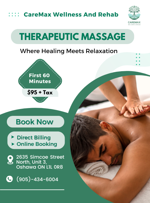 At CareMax Wellness & Rehab, we specialize in personalized care through massage therapy, physiotherapy, and chiropractic services designed to help you restore your health and vitality. Whether you're recovering from an injury or managing chronic discomfort, our clinic in Oshawa is here to support your wellness journey.